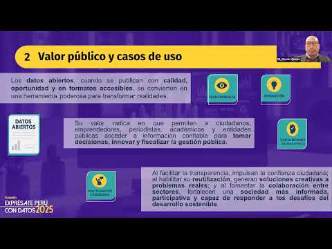 La Secretaría de Gobierno y Transformación Digital de la PCM organizó el Programa Fortalecimiento de Capacidades en Innovación y Uso Estratégico de Datos Abiertos, un ciclo de 10 sesiones virtuales gratuitas diseñadas para preparar a los equipos y participantes de la Datatón Exprésate Perú con Datos 2025. El programa estuvo dirigido a ciudadanía, estudiantes, servidores públicos, emprendedores y jóvenes innovadores con deseos de aprender a utilizar los datos abiertos para crear soluciones digitales alineadas a los Objetivos de Desarrollo Sostenible (ODS).
