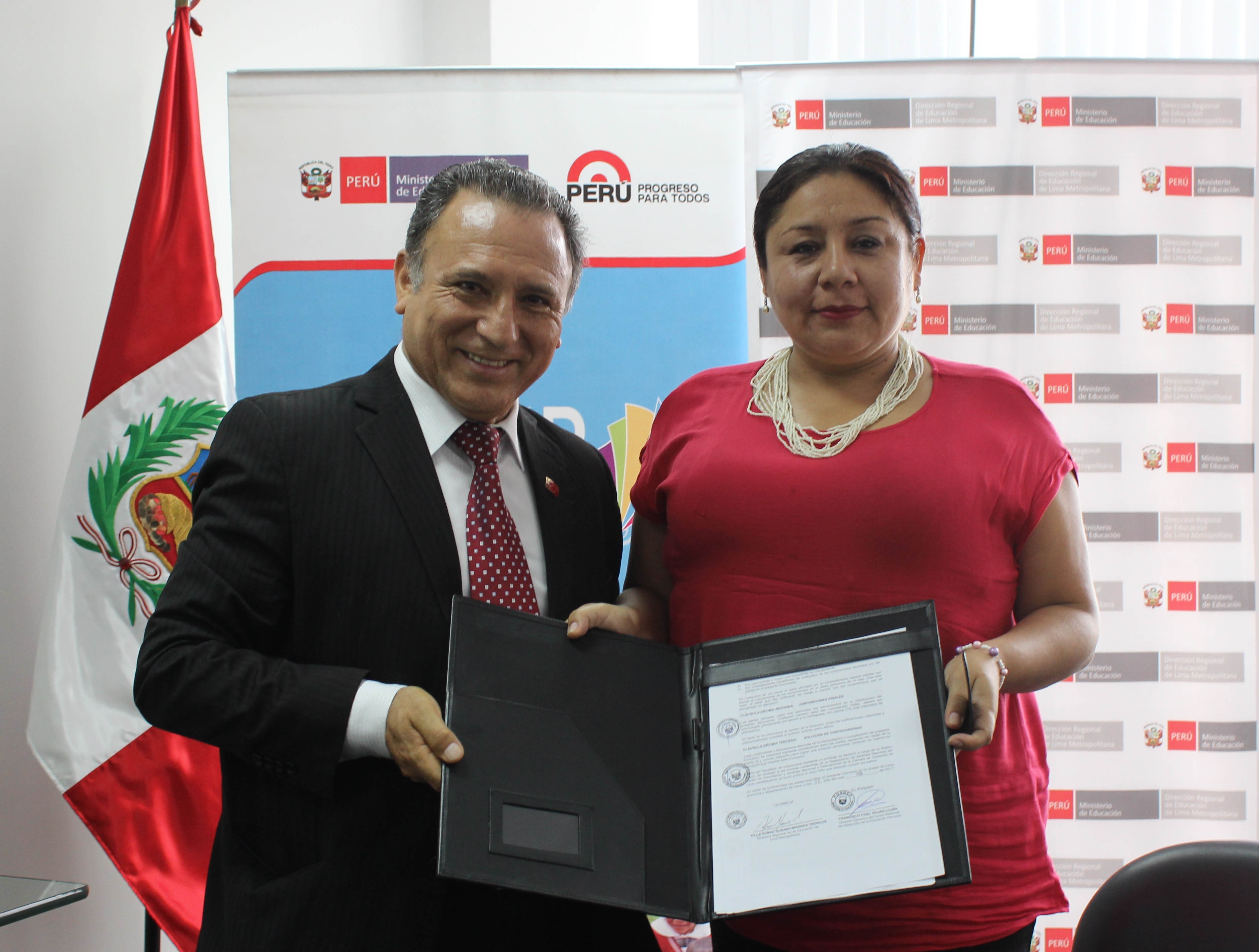 Foto: Fidel Rojas - Gerente Ejecutivo del FONDEP y Killa Miranda - Directora de la DRELM