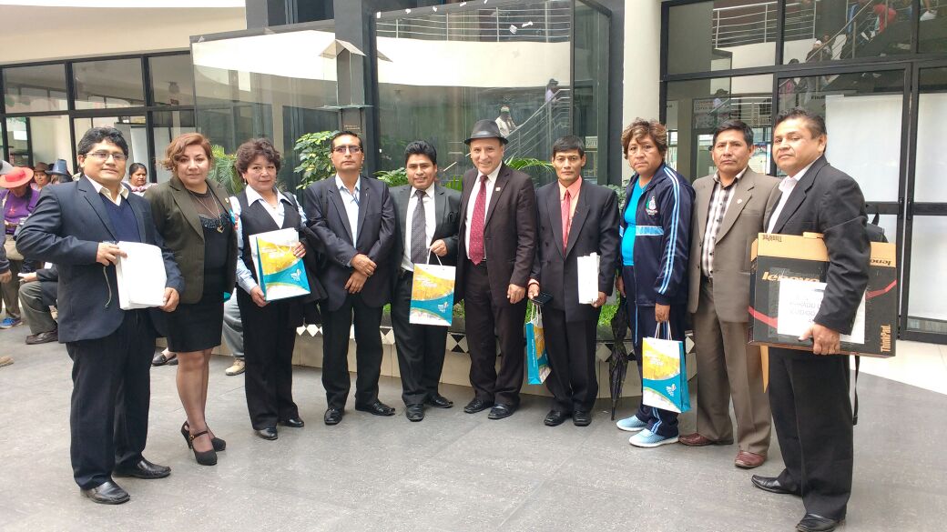 Las instituciones educativas ganadoras N°88104 “María Parado de Bellido”, “Inca Garcilaso de la Vega”, I.E. N°88238 Huamba, I.E. N°84177 “Francisca Sifuentes Pareja” y la I.E.I N°122 Huarupampa recibieron de manos del FONDEP, una laptop y una cámara fotográfica valorizados en cinco mil soles.
