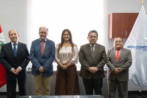 La actividad estuvo liderada por la gerente general de Migraciones, Liseth Melchor Infantes; y participaron José Roberto Piqueras Bouillon, coordinador general de AECID; Eduardo Sal y Rosas Freyre, director de gestión de negociación internacional de APCI, entre otras autoridades.