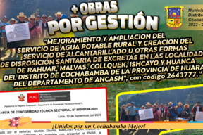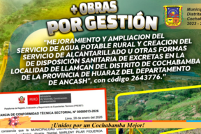 Además del proyecto: “MEJORAMIENTO Y AMPLIACIÓN DEL SERVICIO DE AGUA POTABLE RURAL Y CREACIÓN DEL SERVICIO DE ALCANTARILLADO U OTRAS FORMAS DE DISPOSICIÓN SANITARIAS Y EXCRETAS EN LAS LOCALIDADES DE RAHUAR, MALVAS, COLQUEK, ISHCAYO Y HUANCA, DISTRITO DE COCHABAMBA, PROVINCIA DE HUARAZ, DEPARTAMENTO DE ÁNCASH”, gracias al trabajo en conjunto, entre la población, las autoridades de Cochabamba y de nuestra Municipalidad Distrital.