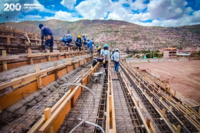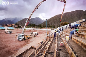 Nota de prensaSe realizo el vaciado de la nueva tribuna de veintiun metros de largo bajo la supervision de las autoridades, asegurando espacios modernos para el deporte y la recreacion de toda la comunidad.