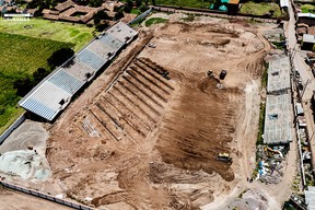 Se ejecutan trabajos para la implementacion del sistema de drenaje en el estadio de Nogalpampa