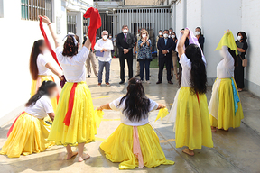 Las adolescentes del CJDR Santa Margarita demostraron sus habilidades artísticas a través de una presentación de danza regional “Carnaval de Lamas”, agradeciendo la visita de la presidenta del Tribunal Constitucional del Perú.